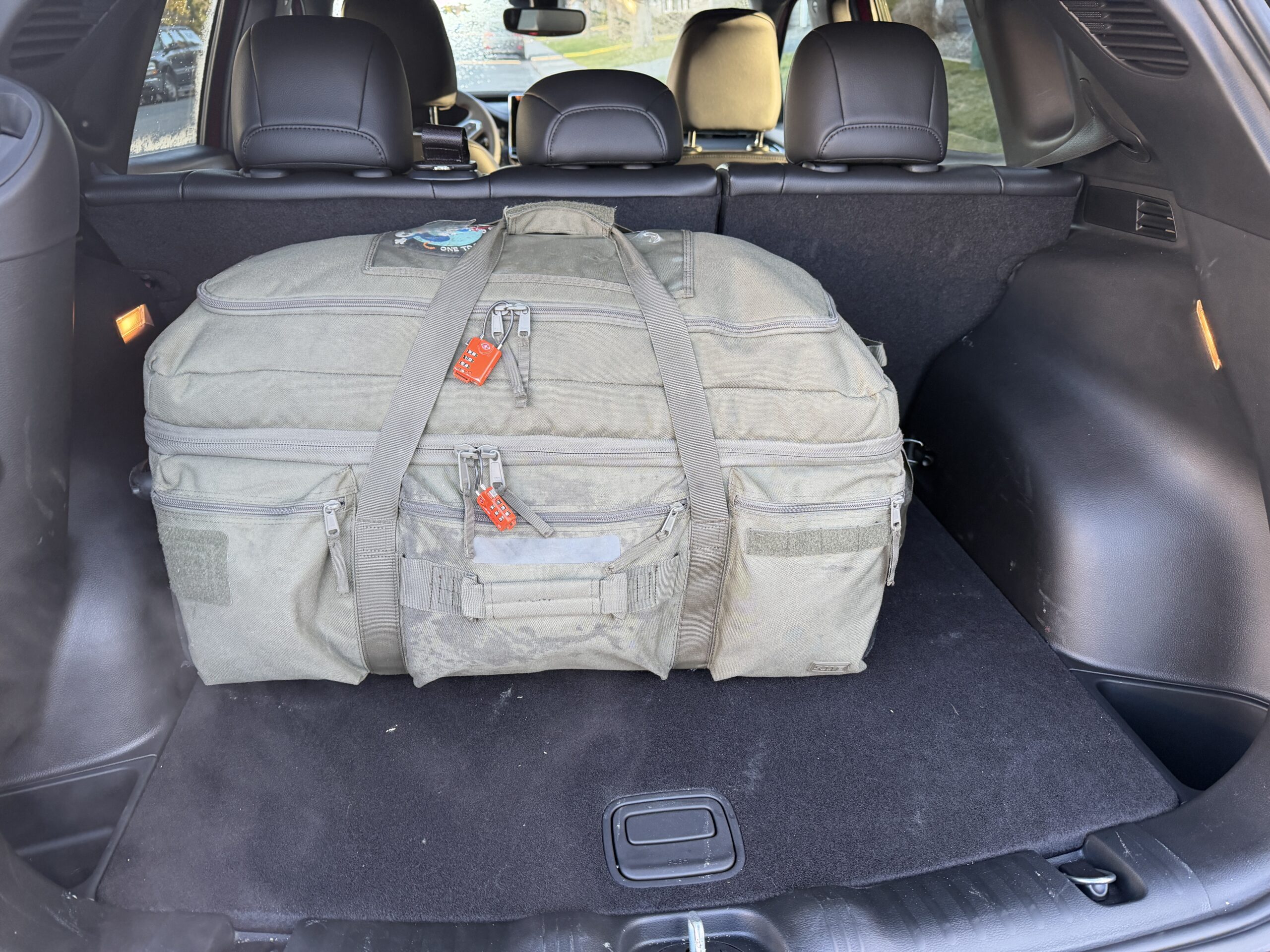 I usually pack the “lid” with my 2 flight suits, jacket and vest. The main compartment I pack my clothes on the left with a packing cube of sock and underwear then my boots, sling bag and toiletries on the right hand side. The size keeps me from overpacking. The bag doesn’t have intergrated locks so I had to buy a set to go through the main zippers. The small outside pockets don’t have a way to lock them so be mindful what is placed in them.